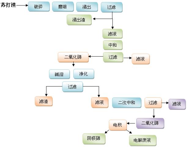 目前,从阳极泥中富集碲主要有两种方法:碱浸法和苏打造渣法。选择什么方法取决于阳极泥中碲的含量,不可一概而论。当阳极泥中含碲在2%以上时,为了提高碲的回收率,避免在阳极泥处理过程中分散于各种矿物中,一般选择碱浸法;当含量小于2%时,一般选择苏打造渣法,采用在分银炉氧化精炼的后期加入苏打,使碲富集于苏打渣中进行回收。
